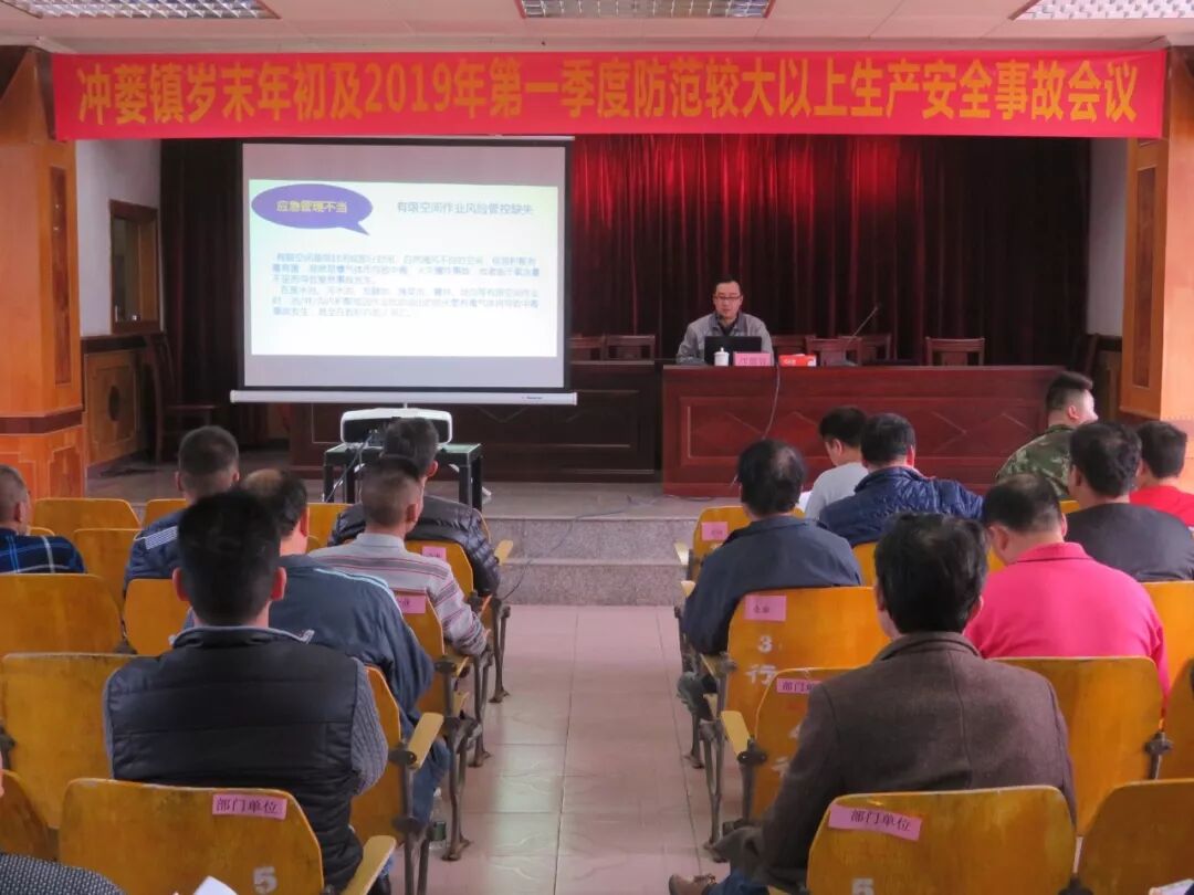 1月11日下午,冲蒌镇组织召开岁末年初及2019年第一季度防范较大以上生产安全事故会议,总结分析全镇2018年安全生产情况,部署岁末年初及2019年第一季度安全生产工作。镇委副书记、镇长甄大勇,镇委委员、副镇长姚乐贵,派出所所长周妃全出席会议并讲话,镇安委会成员单位、村(居)委会书记、企业、三小场所负责人等约110人参加了本次会议。